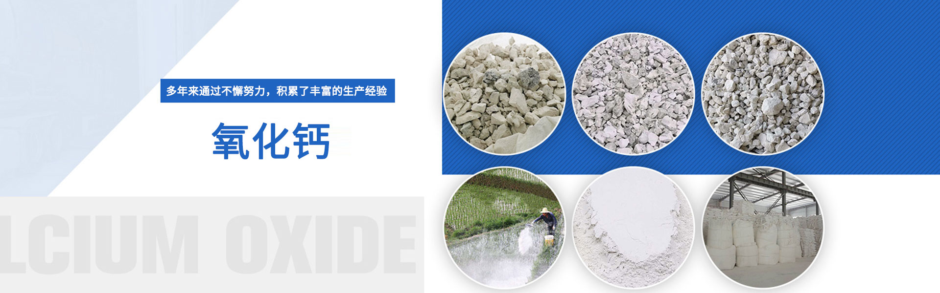 公司主要生產生氫氧化鈣、氧化鈣、生石灰、灰鈣粉、復合堿等產品??蓮V泛應用于冶金溶劑、精細化工、污水處理、電廠煙氣脫硫除酸、建筑涂料、造紙、填料制革、橡膠塑料填充助劑、垃圾焚燒、金屬工廠酸堿中和、漂白、干燥、石油潤滑油、飼料、石材助制劑、石膏板嵌縫凝結劑、收斂劑、食品及藥品等領域。